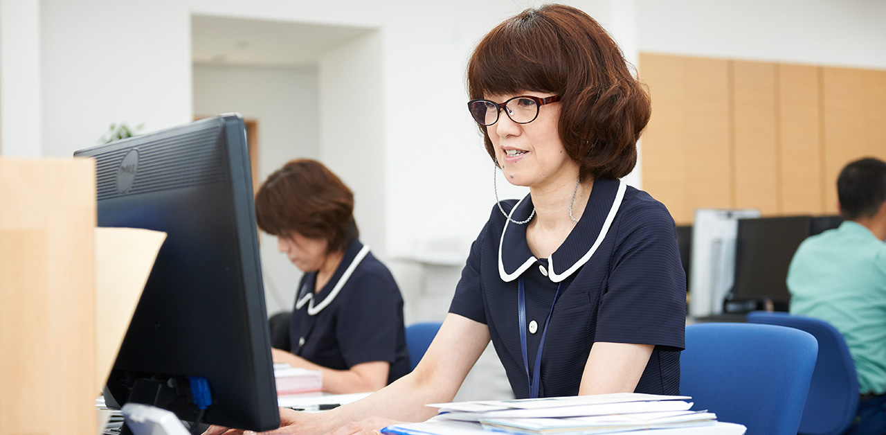 企業の顔とも言える受付業務。明るい笑顔とあたたかな受け答えを意識すると同時に、間違いのないご案内、細やかな気配りによって、クライアント様の満足を高めることが大切です。当社では、プロの講師を迎えマナー教育を行い、接客マナーの向上に取り組んでおります。