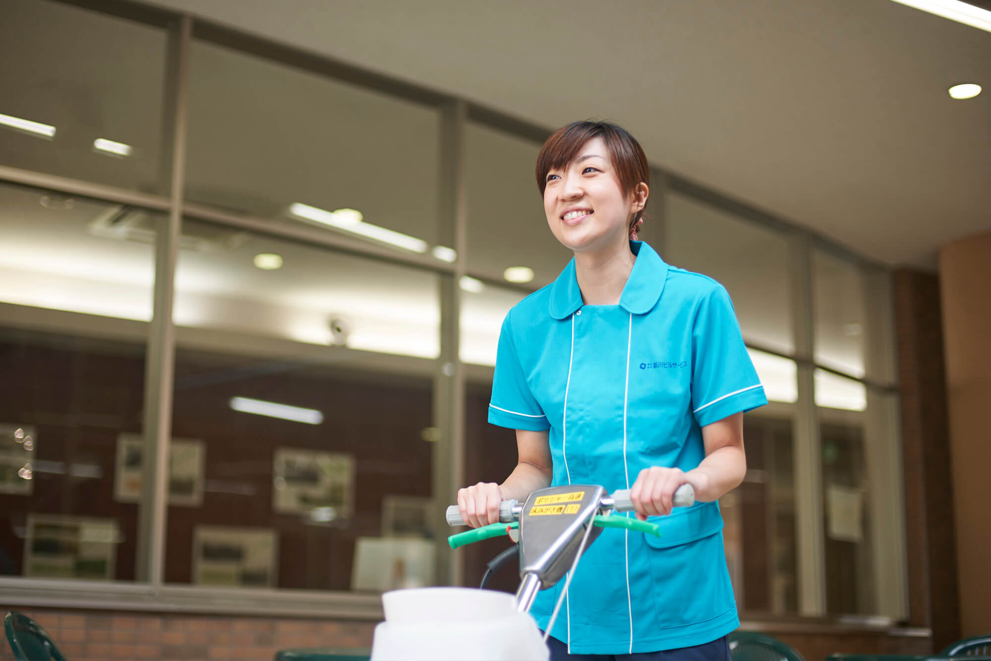 ・自動洗浄機で開店前に店舗の床を清掃