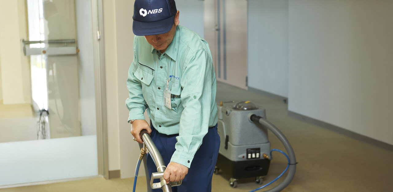 玄関、ロビー、通路、更衣室、トイレ等の日常清掃や手袋の洗濯を、エリア分担して決められた作業を担当します